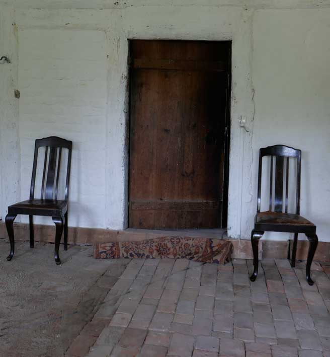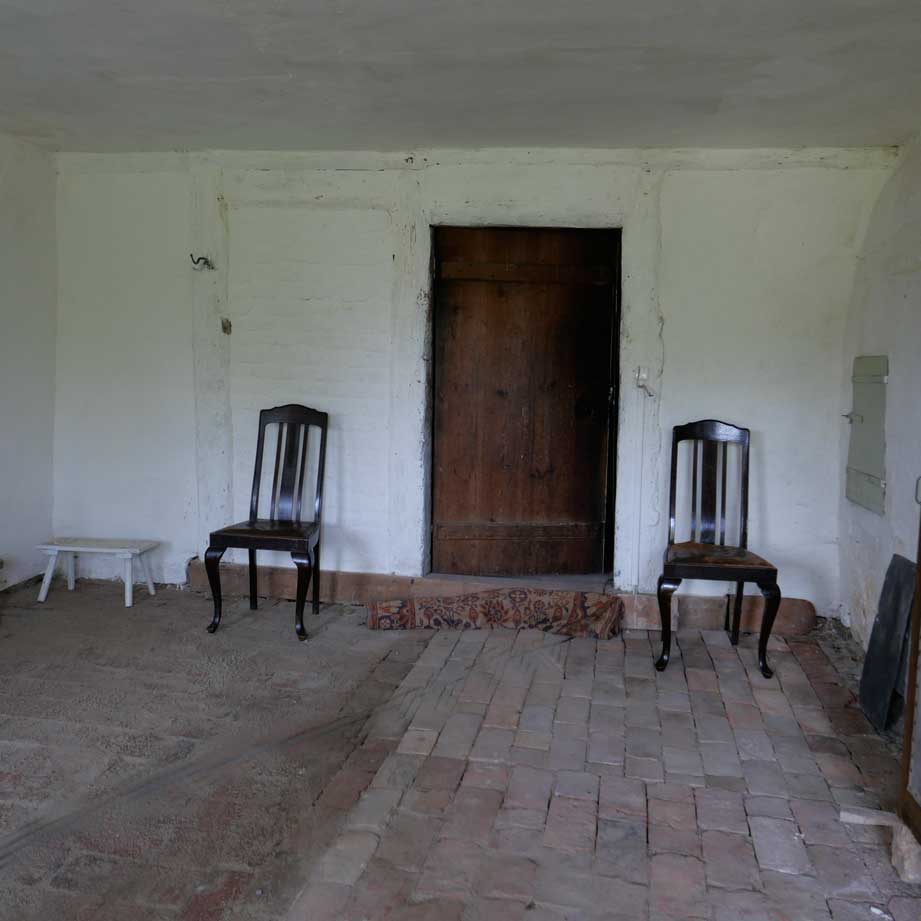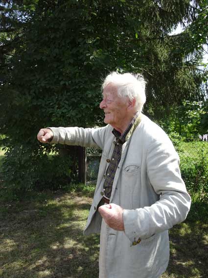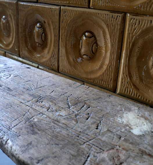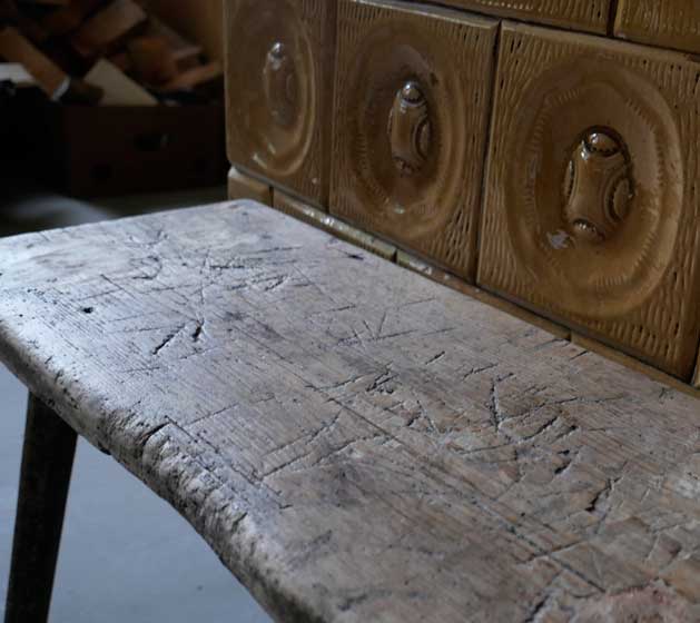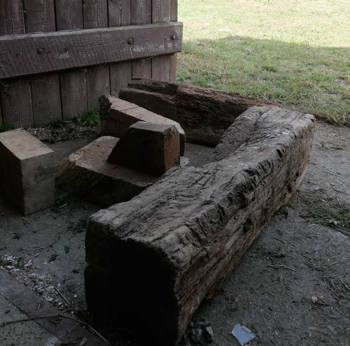 Dort alte Holzteile aus dem vielhundertjährigen Turmgebälk der Kirche beim Turmbau geborgen als Unterlage für die Holzlatten - Betten