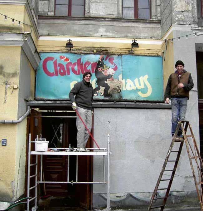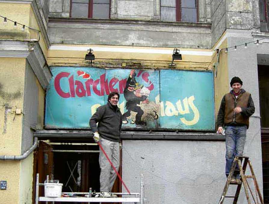 Die beiden Gründungsväter des neuen Clärchen 10 Jahre nach der Wende wieder und noch immer das alte Ballhaus in Berlin.
