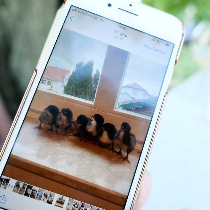 frisch ausgebrütet im Brutkasten, weil die Glucke fehlte