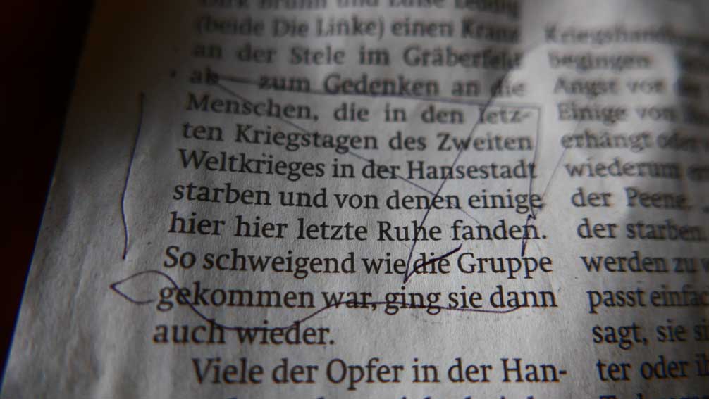 Was alles geschah. Und warum zu ehren. Die die das getan. Wie schwer es ihnen gefallen kann sich vorstellen, wer sich darum bemüht. Und imstande vielleicht ist.