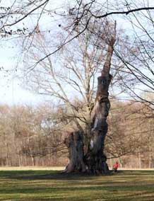 Die Linde noch in voller Pracht, was jetzt amputiuert versucht wurde zu retten