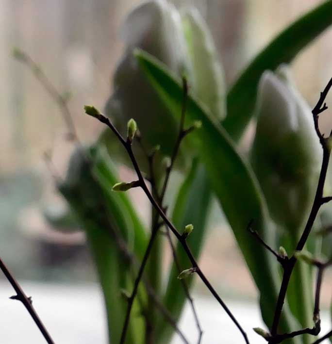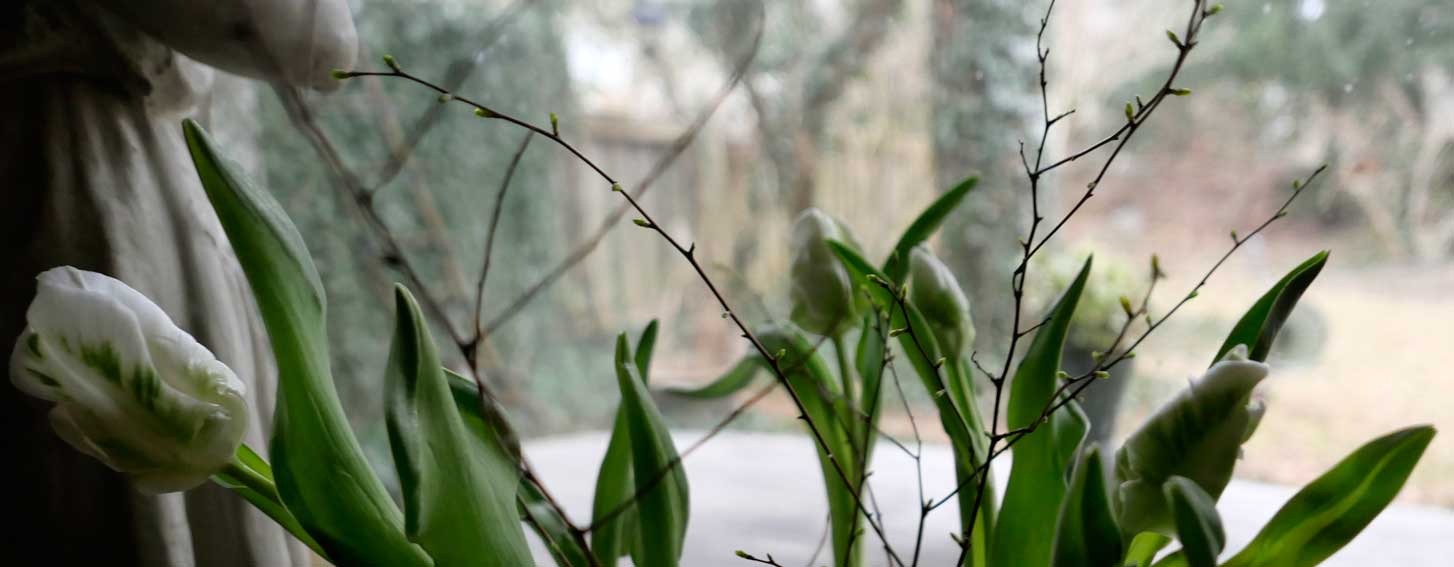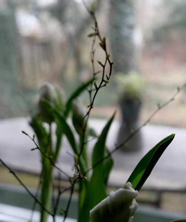 im Glashaus hilft die Sonne am Tage und alles gegen den Wind. Die Schneerosen -neben den Venigdetails am Todesort RWs aus dem Parsifal in seiner Totenmaske- finden hier ihren Platz.