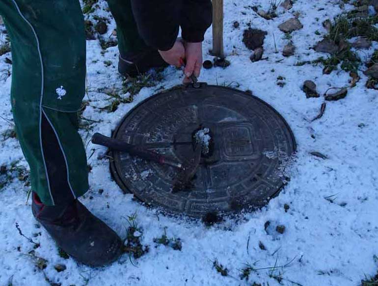 Die neuen Leitung unter der Erde und oben die Öfen, dasss nicht gefriert