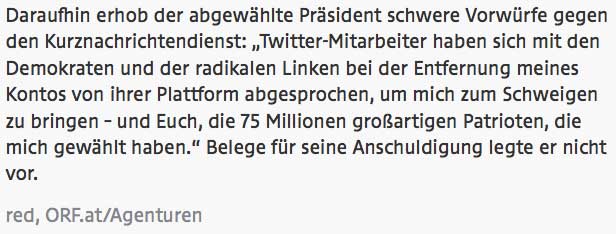 aktuell nach der Sperrung von Twitter: "Twitter geht es nicht um Redefreiheit. Ihnen geht es nur darum, eine linksradikale Plattform zu fšrdern, auf der einige der bšsartigsten Menschen der Welt frei sprechen dürfen."