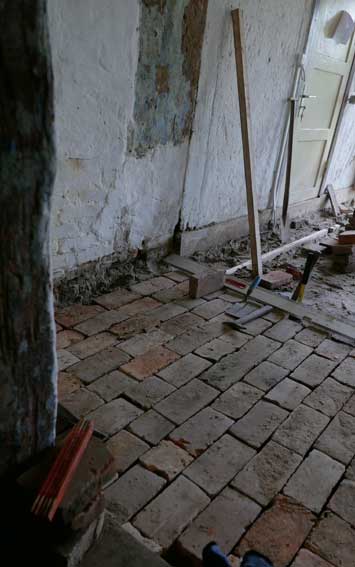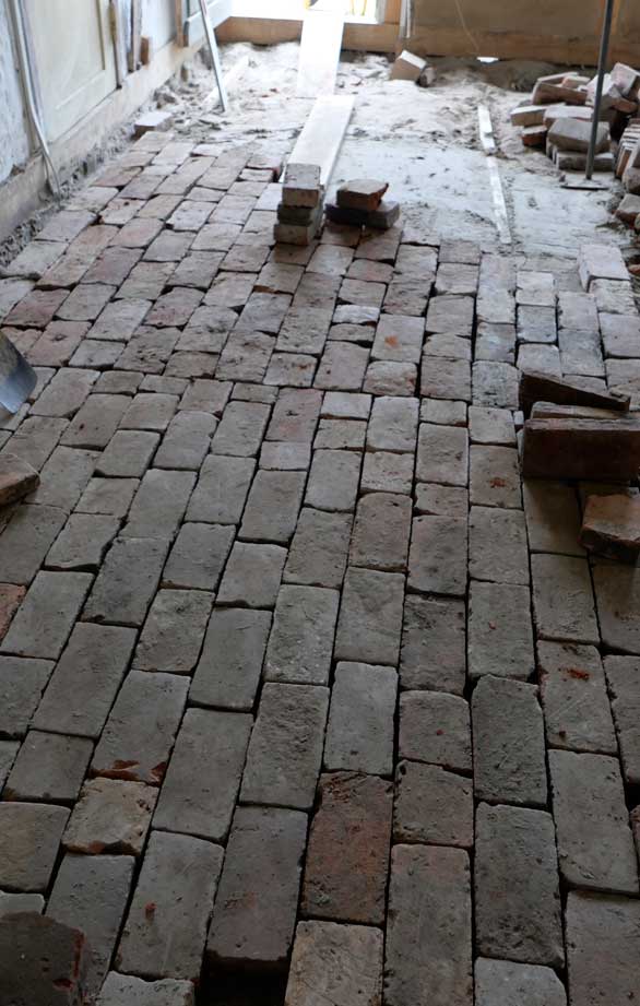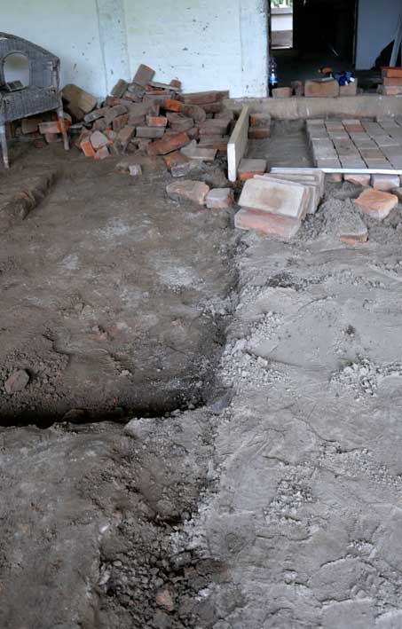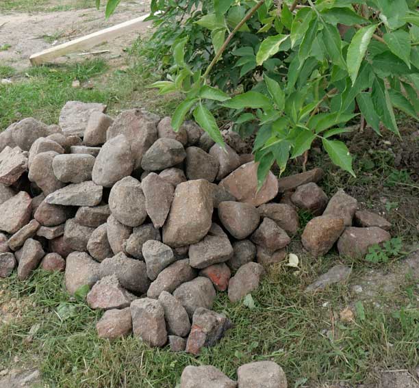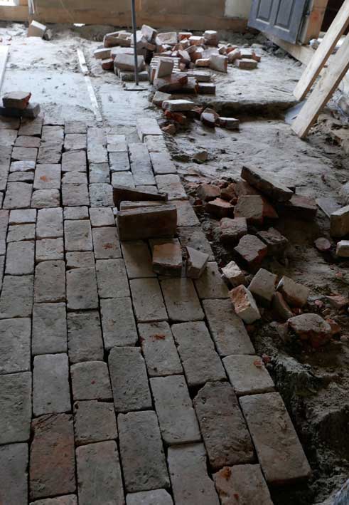Aber beim Entfernen der Steine aus dem bishertigen Boden entdeckten wir darunter kleinere Feldsteine ähnlicher Grösse. Wir nehmen an aus früherer Schicht bevor die Backseteine mit dem 19. Jahrhundert Mode wurden.