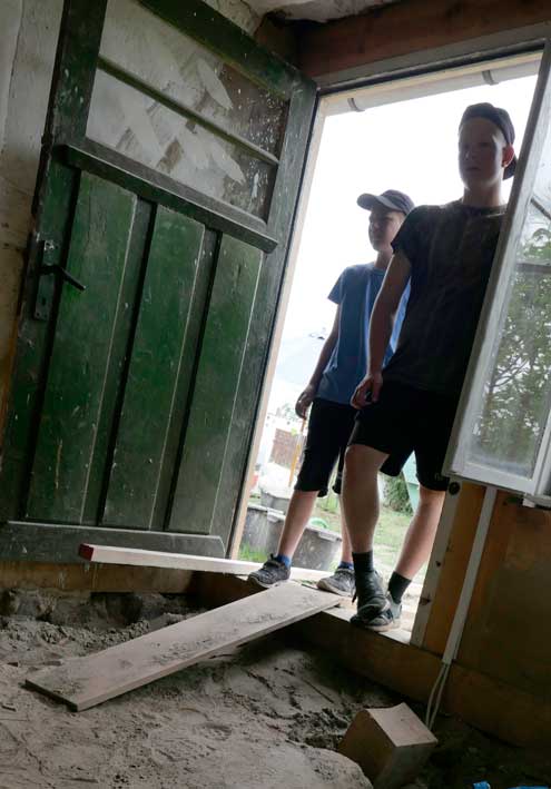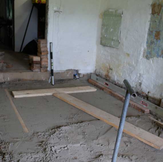 In einem Tag ausgelegt von Tür zu Tür durch den Raum, der dann die Küche sein wird.