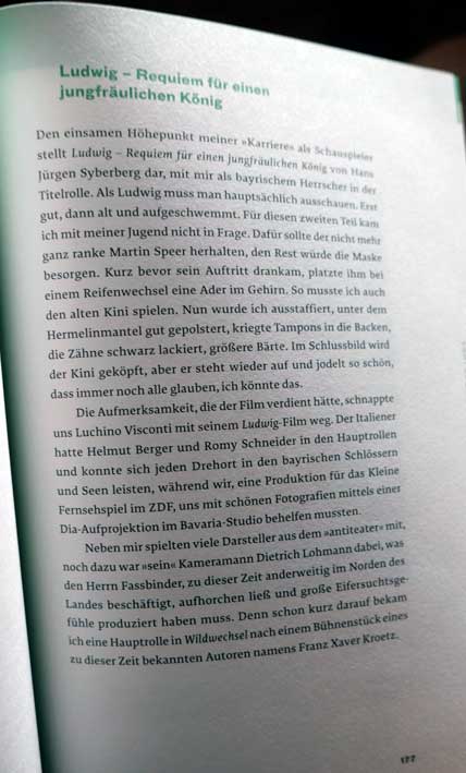 Im neuen Buch, der Lebensbeschreinung, selbst von H. Baer meint er, neben Vicontis Ludwig seien wir im Nachteil. Und so war es eben nicht. V. endet da nach einer Wochen in bester Lage von Paris im Kino und wir iebten