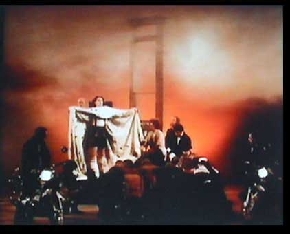 jodelnd im Königsmantel auferstanden vom Schaffot der Jetztzeit zu Wagners Endzeit mit den Rockern aus Giesing im Kreis.
