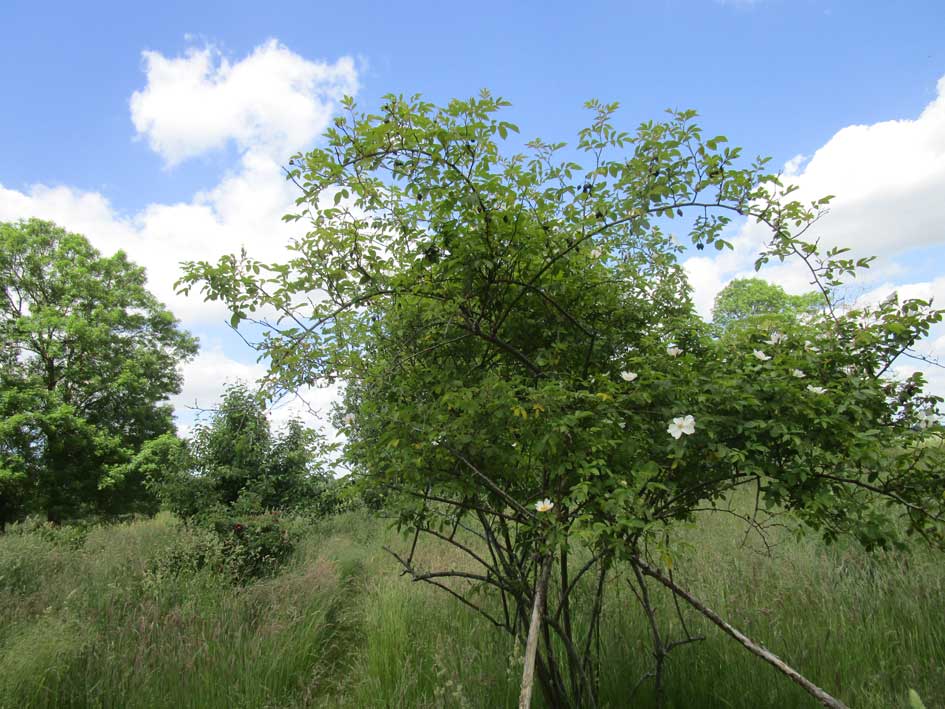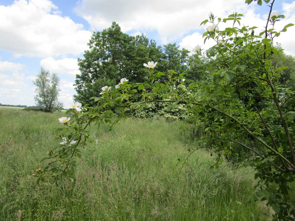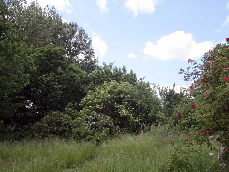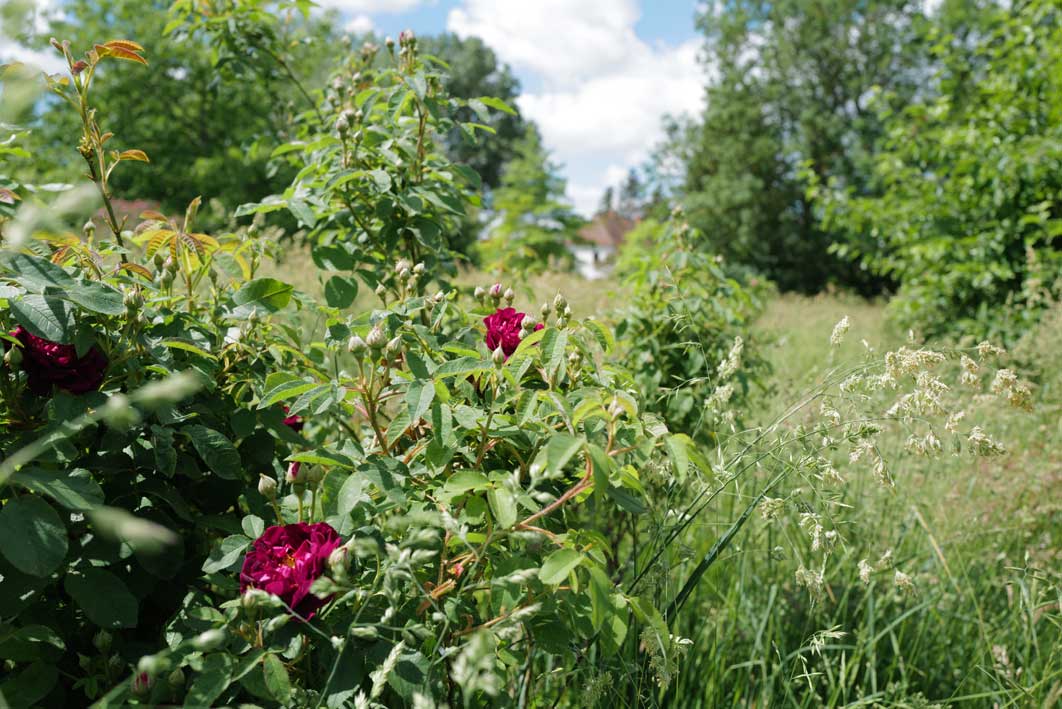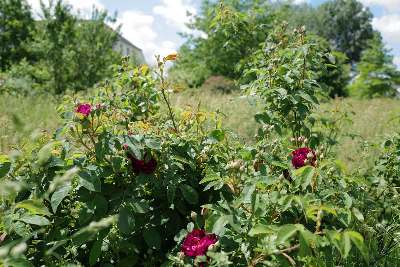 Ein Park nun noch mal alt werdend. Und sein Geschichten in der Rosenblüte und hochgeachsenem Gras.