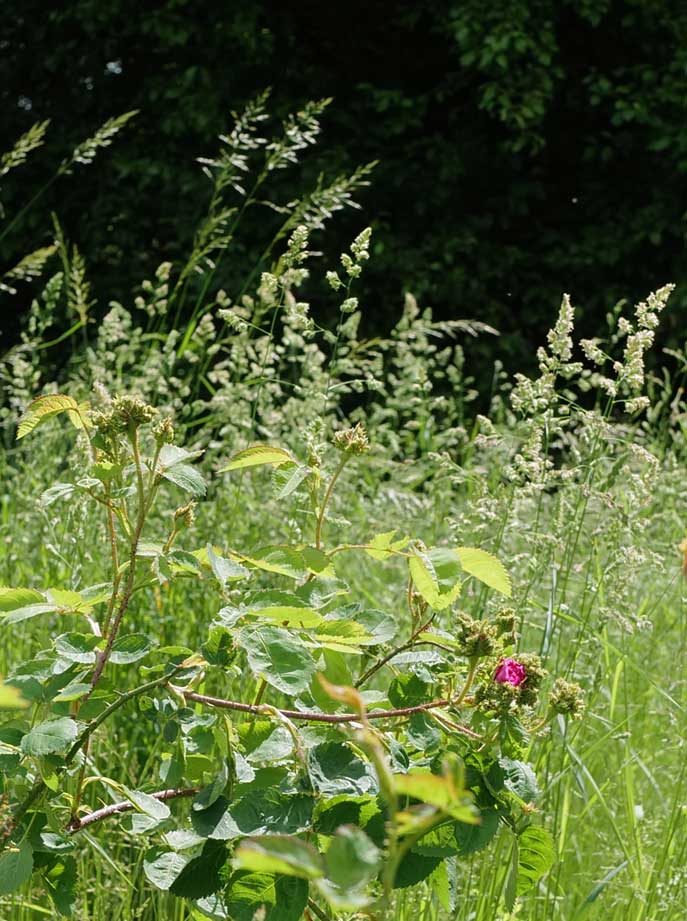 aus dem Gras, dem in voller Höhe ausgewachsenem, heraus geschält.