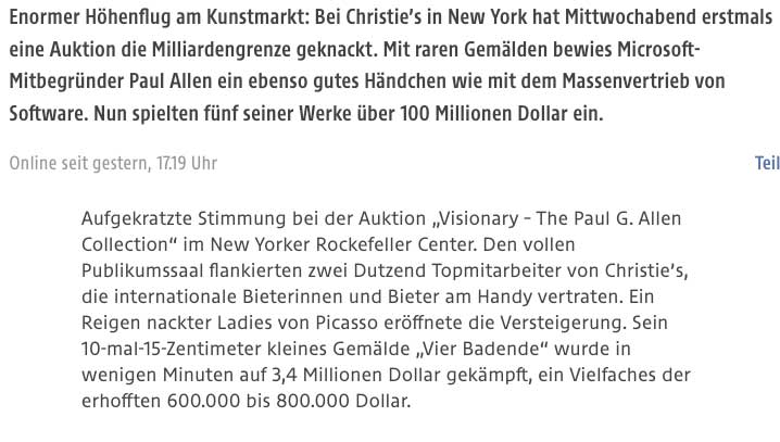 Wo Kunst zur Ware wird, werden auch Ruinen und Asche der Toten nicht mehr fruchtbar.