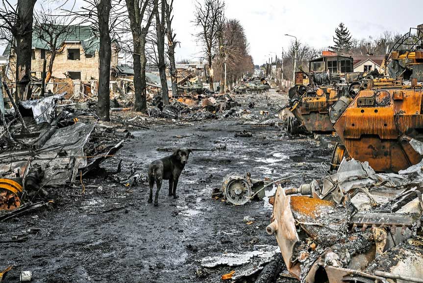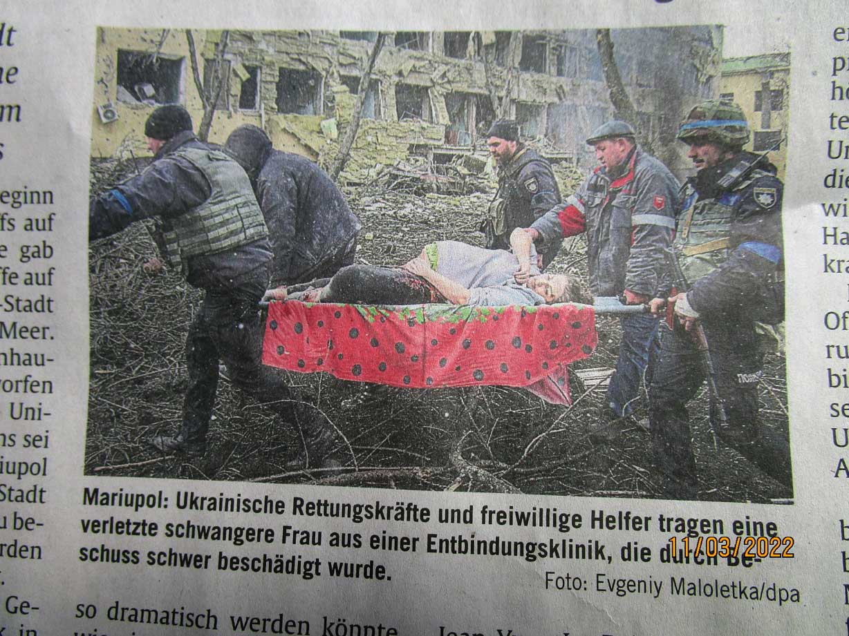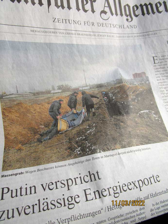 Ein seltsamer Krieg ohne Nachricht über Gewinne und Verluste oder Bilder zu Kriegshandlungen. Dafür Bilder von Fluchten der Millionen und zerstörte und brennende Häuser der Bewohner. Soldaten keinen Aktion.