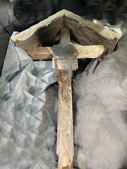 erste Versuche mit gespaltenem Holz für die Ziegel zum Kreuz auf dem Grab.