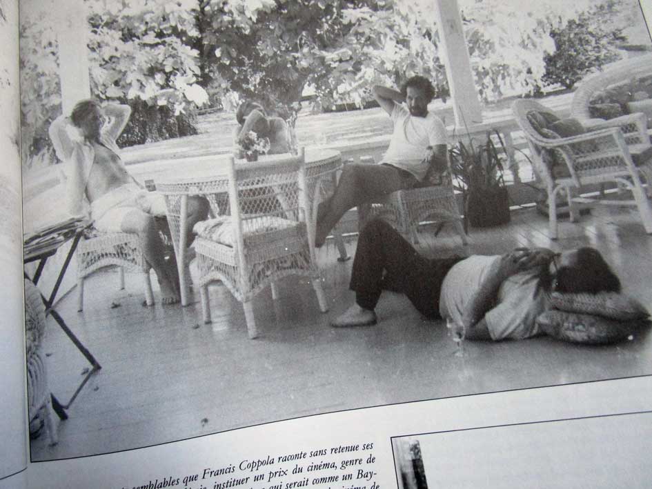 Aus dem Album für FC von diesem Aufenthalt in seinen Häusern 1980, von Tom L. (in der Mitte) organisiert, vor der Apocalypse now Premiere, hier in Cahiers du Cinema/Paris, Sonderheft(hors serie, Feb.1980).