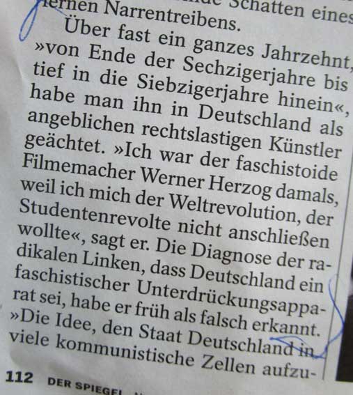 Werner Herzog schreibt seine Memoiren. Bericht im Spiegel aus Hollywood.