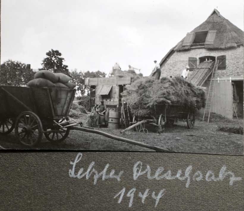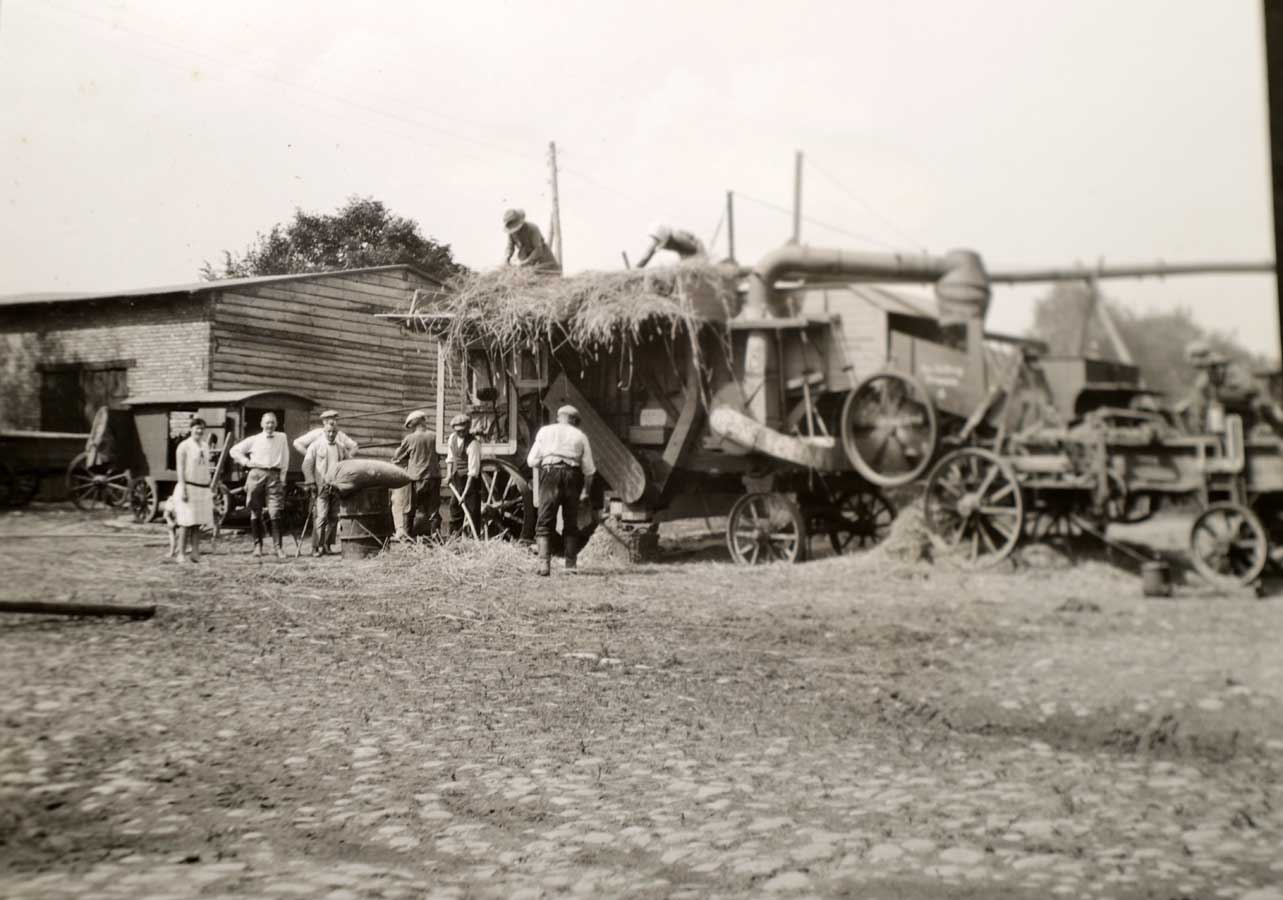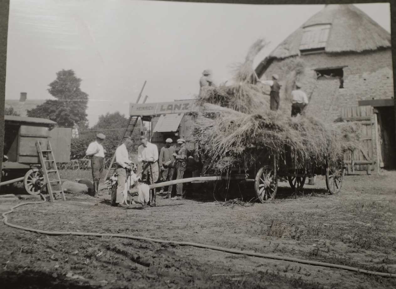 Alles Pflaster und der Düngerschuppen an der Stelle des Bunkers heute. Einfach noch die Dreschmaschine einen Sensation. Mähen ohne Sense.