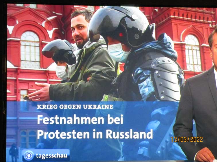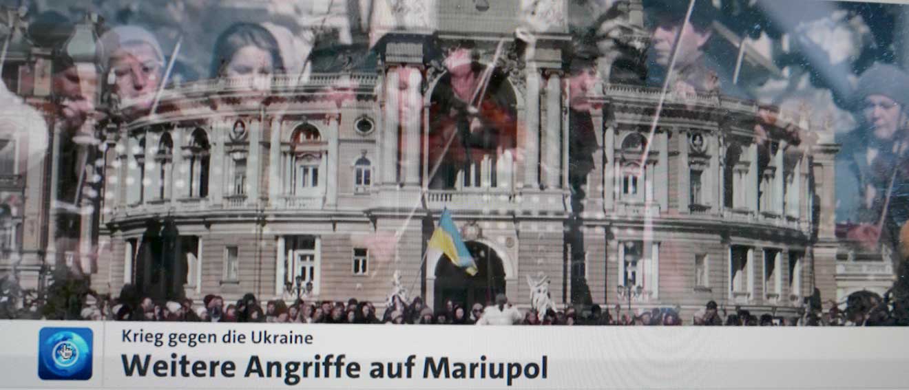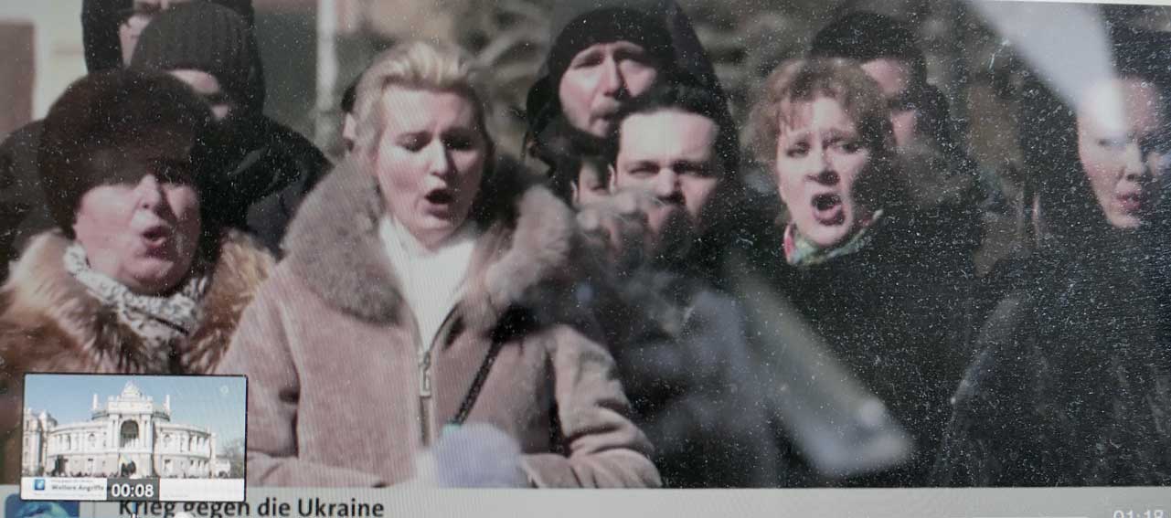 Was ist passiert. Mit fadenscheinigen einschüchternden Gründen überfällt das alte Gespenst des Kommunismus aus Moskau die Nachbarn und will sie beglücken. Mit militanten Mitteln Häuser vernichtend, erbarmunslos mit Leichen überall, Bäume überall als erste Opfer an den Strassen. Die Menschen aber wollen nicht, fliehen scharenweise, verstecken sich in Kellern, singen um ihr Leben. Selbst im eigenen Land Russlands, werden die Worte verboten, die das aussprechen und werden die Menschen verschleppt die es trotzdem wagen. Wie unter fremder Okkupation.