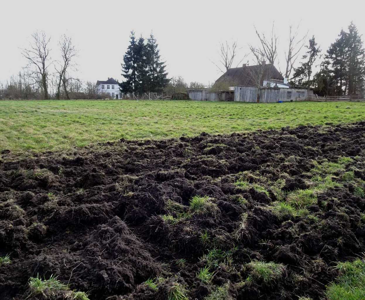 am Weg aus dem Dorf entlang zur Brücke aufs Feld wird es blühen also dann