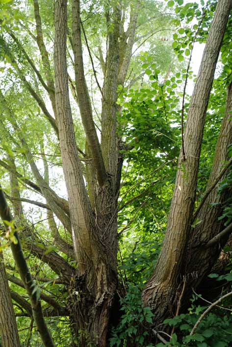 Die dominierende Weide bricht auseinander. Sachte. In der Mitten von oben nach unten hinab. Noch gestützt von den Nachbarbäumen, aber zu trocken ist es gerade hier am offenen Saum der Anlagen.
