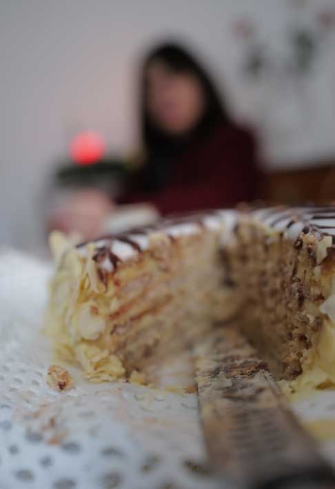 Der Tag von Estherhazy, der Torte, Heldin des Tages aus eigener Küche, wie all die Filme hier zuletzt, selbstgefertigt. Wieviel Schichten, aus welchem Zutaten, feine Konfektionierung.