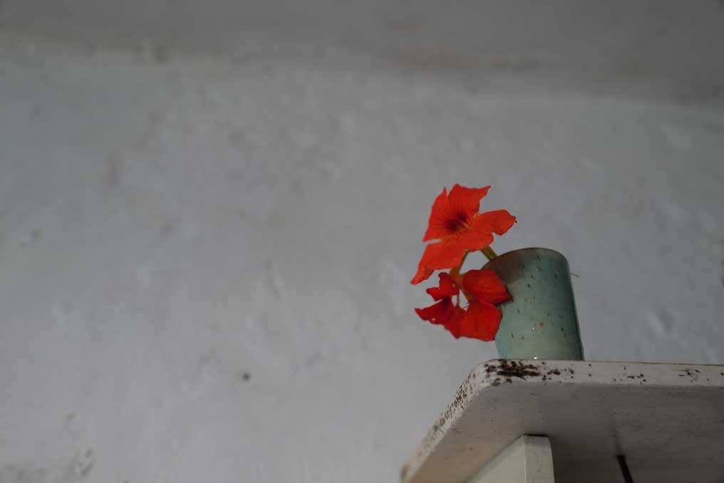 also hoch gestützt und verbunden mit Lehm, unten der Eimer für Wasser zum Wässern nach und nach.