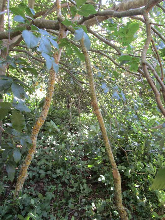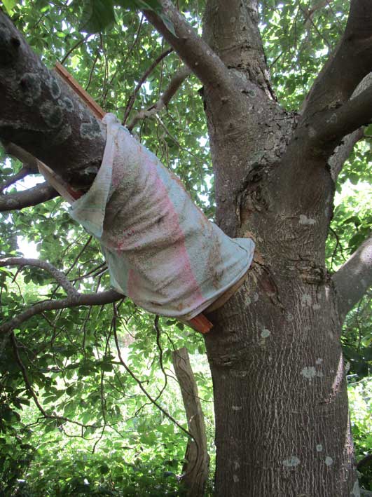 zur Hälfte hing er noch am Stamm.