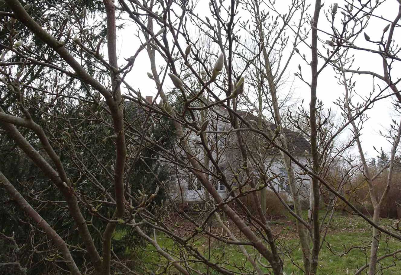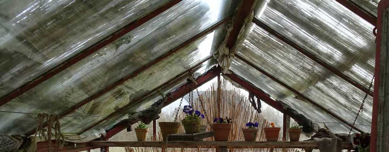 mit nachbarlichem Gruss nochmal auf schattenfreiem Grund die Blumenhütte aus Glas wohlbegrenzt
