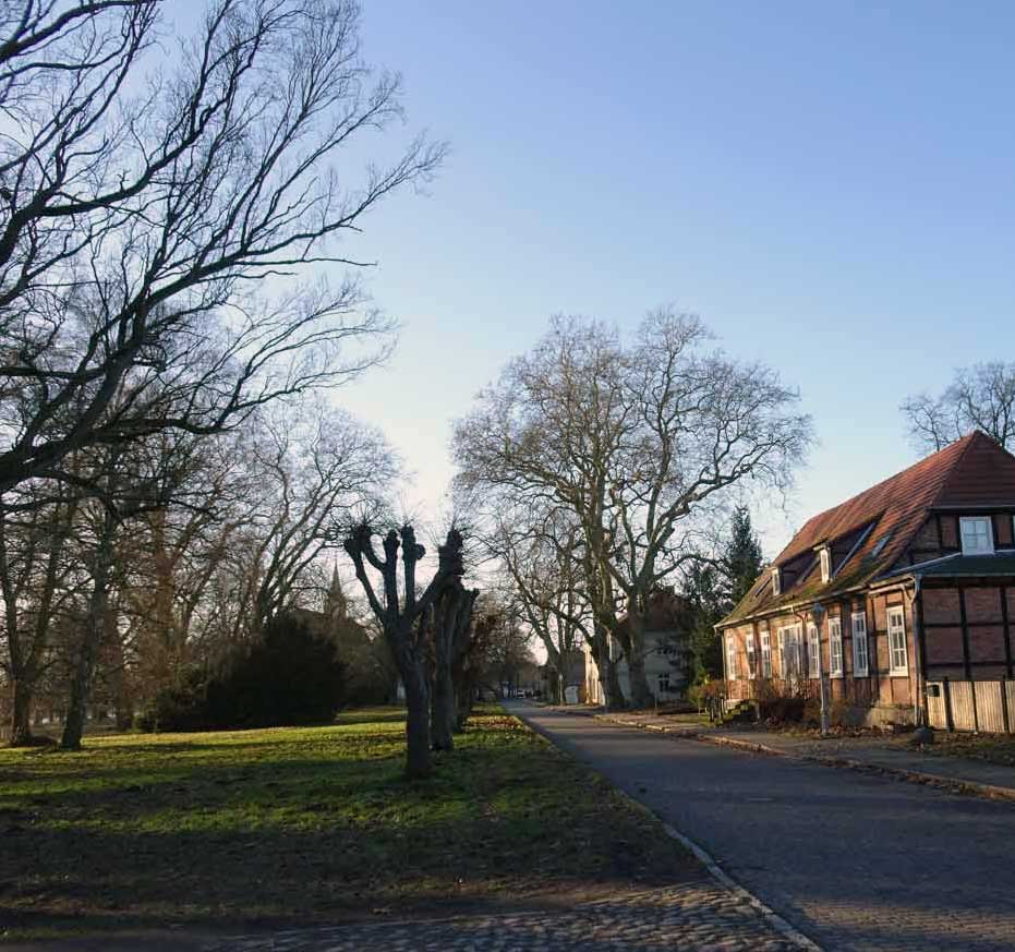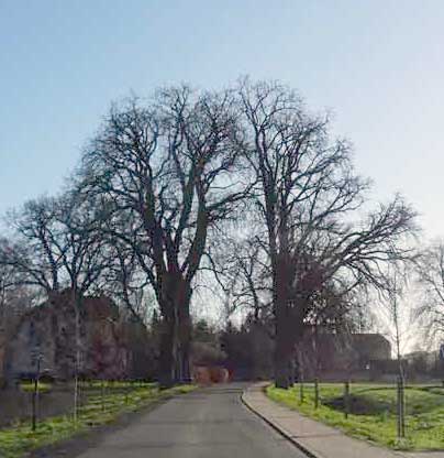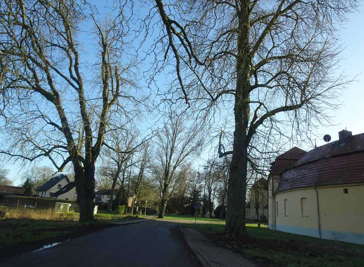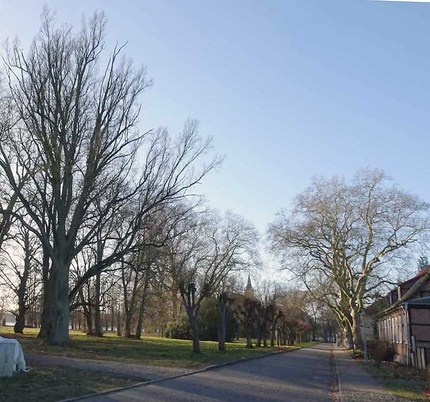 Es wäre interessant zu erfahren, wie die Straße vor dem Setzen dieser Pyramideneichen in den 70er Jahren ausgesehen hat. Die Häuser der Eichenallee sind 1913 und 1914 erbaut worden; das sehr schöne Pfarrhaus erscheint mir bedeutend älter zu sein.