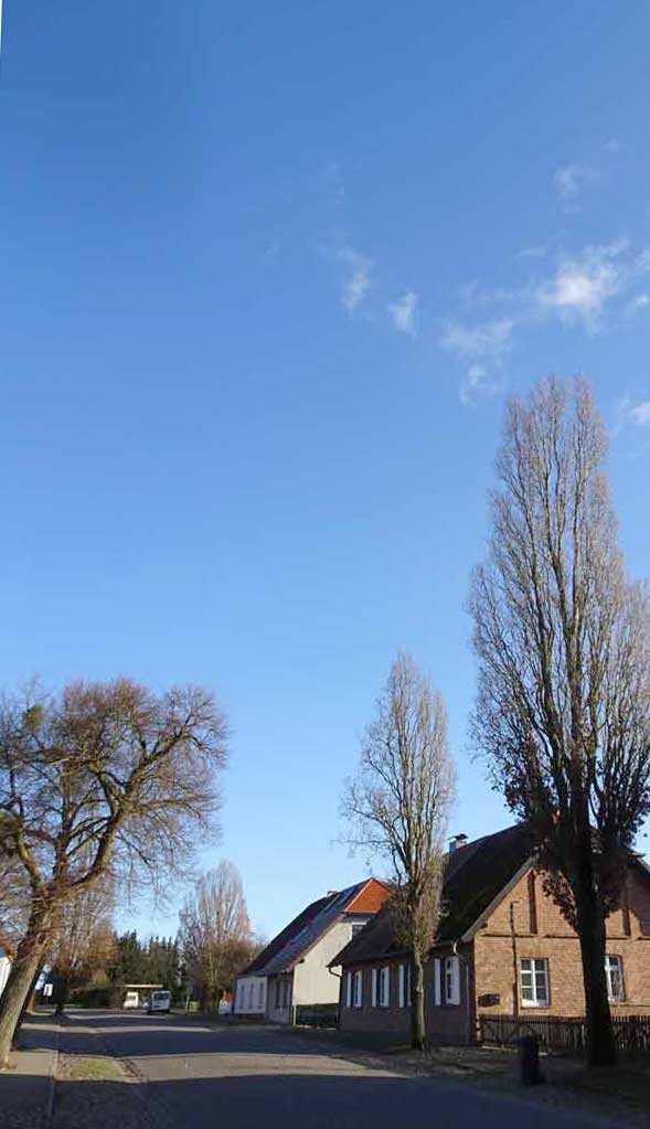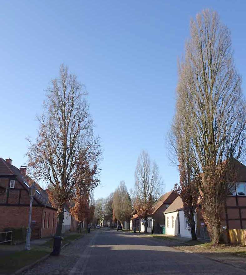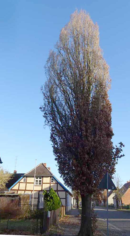 Mir gefallen die Pyramideneichen auch nicht; sie haben etwas unnatürliches und bilden zu den wunderschönen alten Bäumen im Schlosspark, an der Orangerie, im Pfarrgarten einen deutlichen Kontrast. Ich sehe sie eher als Zeugnisse der DDR, ebenso wie die an den Häusern befindlichen Fahnenhalter, welche nach 1990 nicht mehr benutzt wurden. Obwohl mir die Pyramideneichen nicht sonderlich gefallen würde ich mich als Bewohner Ivenacks um deren Erhalt bemühen, denn auch diese Bäume verbessern die Luft ort und bieten Brutvögeln Schutz und Heimat.