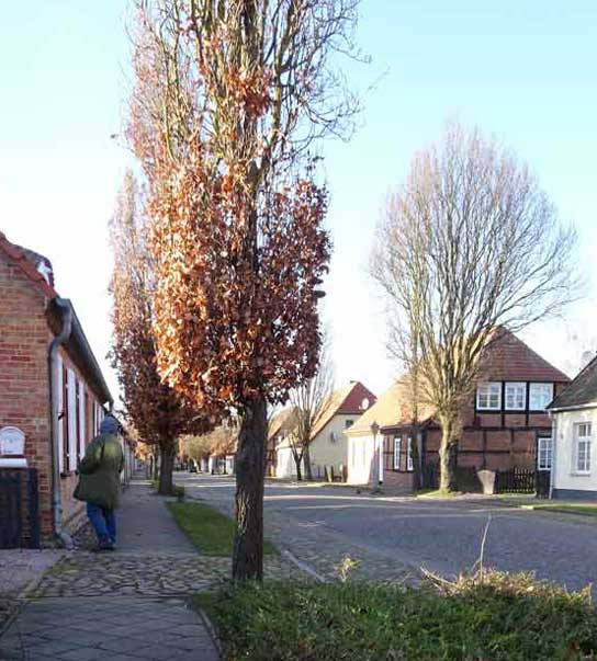 im Nordkurier wurde behauptet, dass die Pyramideneichen in der Eichenallee gefällt werden sollen, weil deren Wurzeln den Bürgersteig anheben und in die Keller der Häuser wachsen. Das scheint mir aber nur ein vorgeschobenes Argument zu sein. Der Bürgersteig wird keinesfalls Rollatorfreundlicher, wenn man alle Pyramideneichen fällt, Das gesamte Konstrukt Straße/Fußweg ist ein sowohl ästhetisch, als auch funktionaler Fehlversuch öffentlicher Fördergelder sinnvoll einzusetzen. Die Straße wurde mit Betonpflastersteinen in der Farbe Herbstlaub hergestellt. Von dieser unnatürlich wirkenden Straße führen im rechten Winkel Kopfsteingepflasterte Einfahrten zu den Toren der Grundstücke. Will man diese mit einem Rollator auf dem Bürgersteig überqueren ist das recht beschwerlich, weil das Kopfgsteinpflaster natgurbedingt recht holprig ist.Zwischen diesen Auffahrten ist der Bürgersteig mit ca.30x30cm grauen Betonpflaster belegt. Direkt an den Eichen hob sich im Laufe der Jahre die eine oder andere Betonkachel.