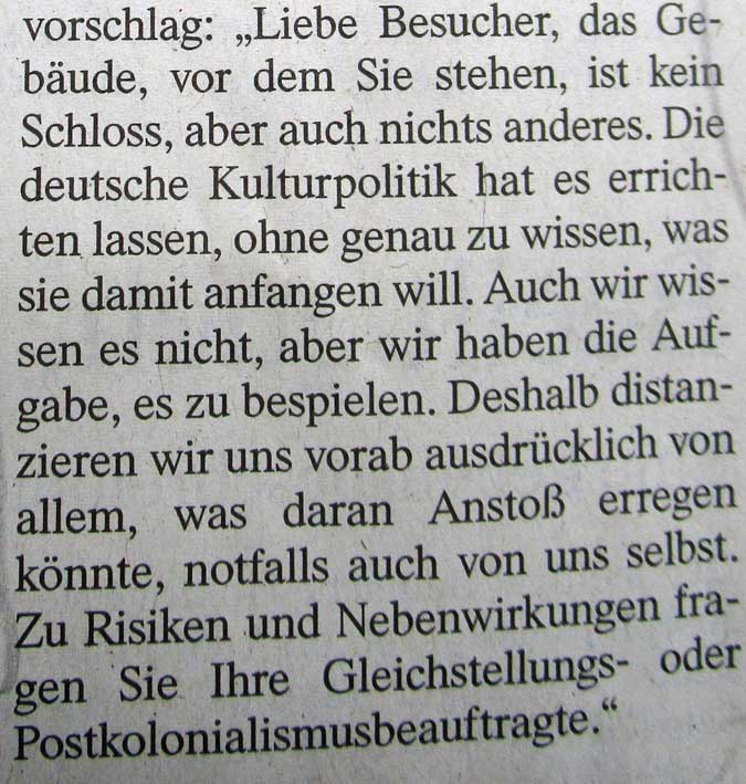 Dies hier zentral das Schloss-Desester in Berlin betreffend. wieder hergestellt in historischen Maske und im Inneren eine Leere, die wir kennen am abseitigen Markt in Demmin.