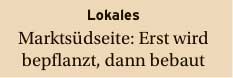 Nun vermarktet von denen: die sich bisher nicht kümmerten. Geschrieben in der Zeitung von einem, der sagte: nie wieder Markt, und wenn jetzt solche die Hand ausstrecken danach, die auf ihren Wahlplakten schrieben: nicht mit uns, sollten sie bedenken: alles dies ist entstanden aus der Leere des Nichts seit vielen Jahren des Endes der Stadt, des Untergangs, aus dem wie sie einmal war.