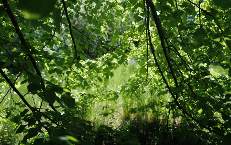 die Sonnen-Platz der ersten Blatt-Knospen des Jahres nun im Halbschatten tiefherab geborgen