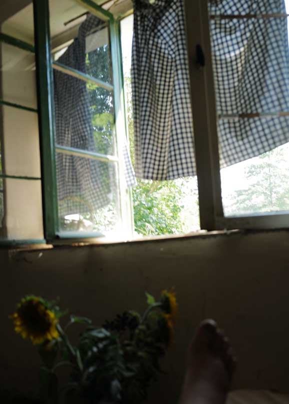 vor dem Gewitter nach heissem Tag die Leinenjacke, von der Mirzl aus Grundlsee genäht, ruht nach dem Waschen aus.