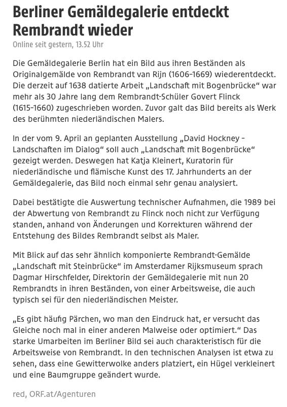 Anders als in München, die Pinakothek, wo der Rubens abgehängt und ins Depot geschafft zuletzt wurde, die Landschaft mit Regenbogen, in der sie seit über 200 Jahren der Sammlung wichtig war. Bis aktueller Kuratoren-Eifer sie jetzt sang und klanglos dh heimlich verbannte als Werkstatt-Kopie nach dem Original in London usw. Wer entdeckt nun noch was, solcherart entzogender Aufmerksamkeit und und unseren Blicken, anlysierend und nach Kenntnissen der Arbeitsweise des Meisters Hand und Sinn. Solche Eingriffe korrigierend am Ende. Dessen gewiss um was es immer ging und geht. Mit Abstand, auch von dem Komputer-Wissen, werden wir erkennen, wo dieser irrt. Der Meister, selbst im Irren nie. Denn da fängt er an. Und wir mit ihm.