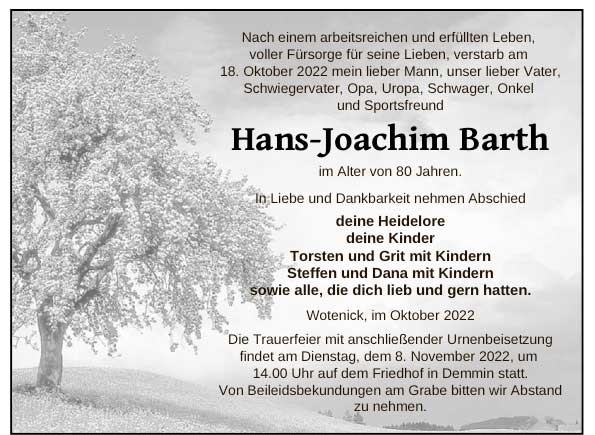 Und dann kam die verspätete Nachricht zum Tod von Jochen Barth. Er, der damals vor 10 Jahren anrief, als er hörte, dass der Turm der Kirche wieder gebaut würde und anbot aus seinem Wald das Holz dazu zu liefern