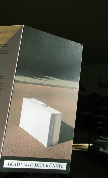 Der Neujahrsgruss aus der Akademie der Künste in Berlin, wo die Arbeitskopien aller unserer Filme nun liegen, zuletzt aus dem Hochwasser -in München immer noch-, geborgen. Der weisse Koffer auf der Strasse an dem Weg zur Rettung, wir nehmen ihn gern als gutes Zeichen.