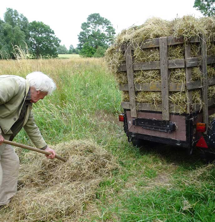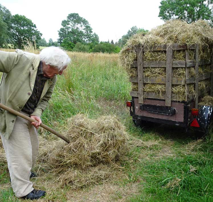 schnell vor dem Regen muss es rein, das Heu, in die Scheune, die heute eine Halle ist. das keiner haben will, wozu