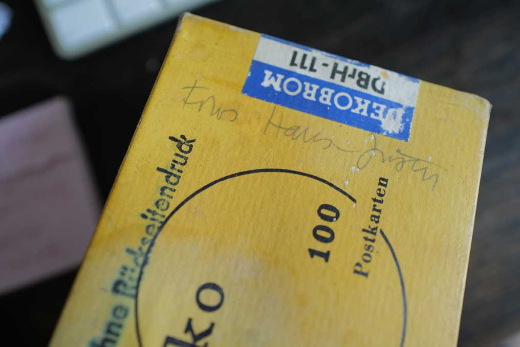 Ordentlich aufgehoben auch die ersten Fotos, damals in der Schule, die Lehrer, der Grundschule noch, St. Georgen. heimlich aufgenommen während des Unterrichts. Das traute sich keiner, Mit der ersten Box.