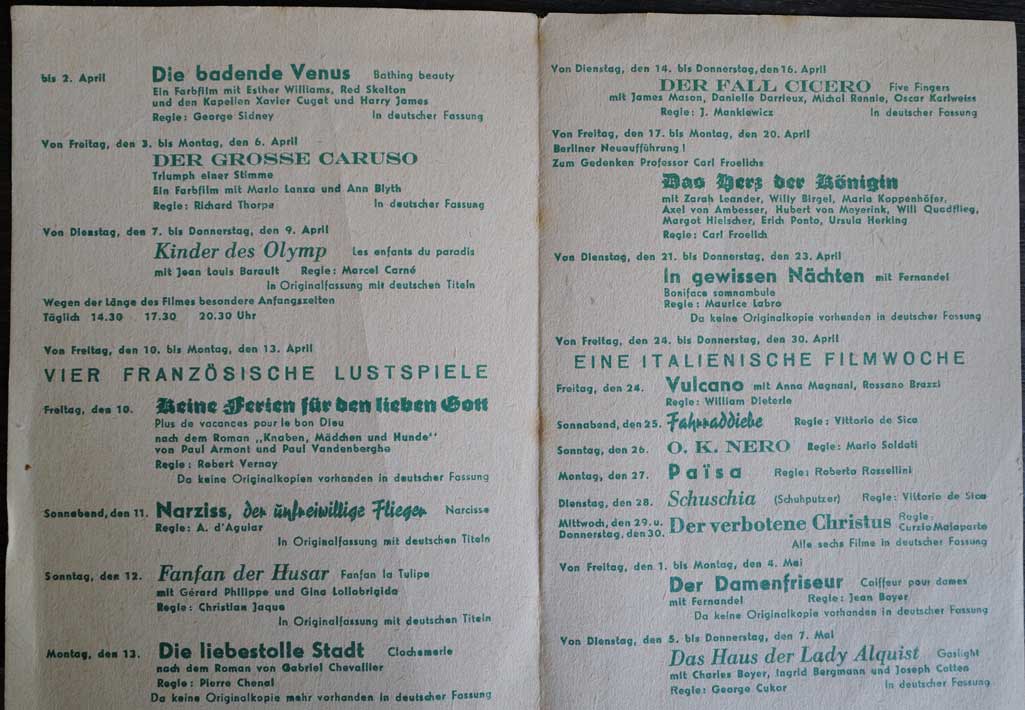 Das Filmprogramm des Kinos im Westen Berlins, wo die französischen Filme liefen, die dann den Weg wiesen.