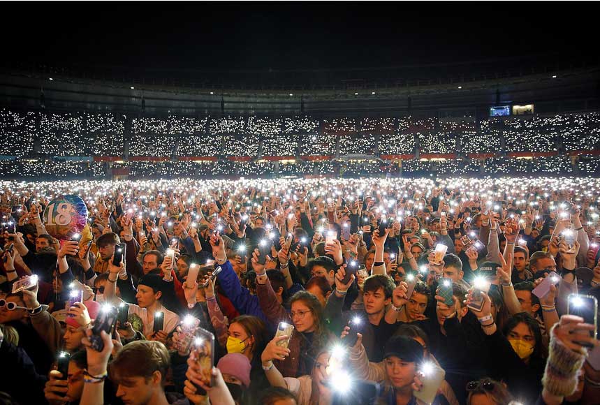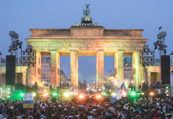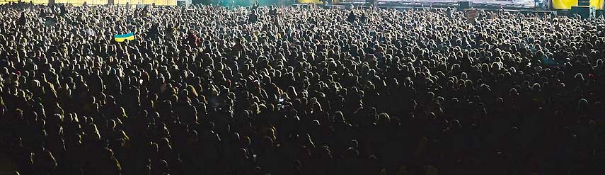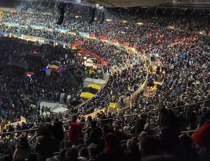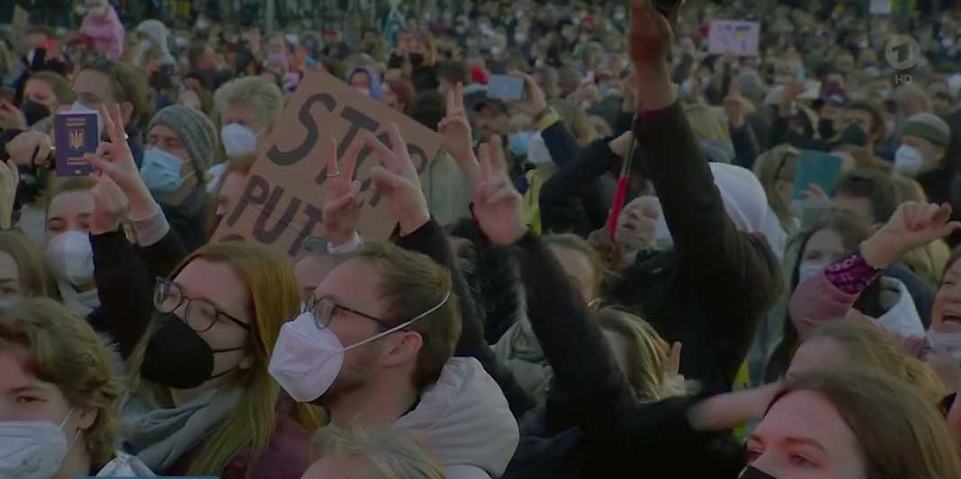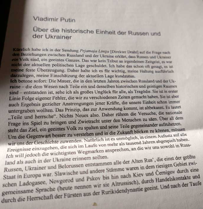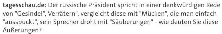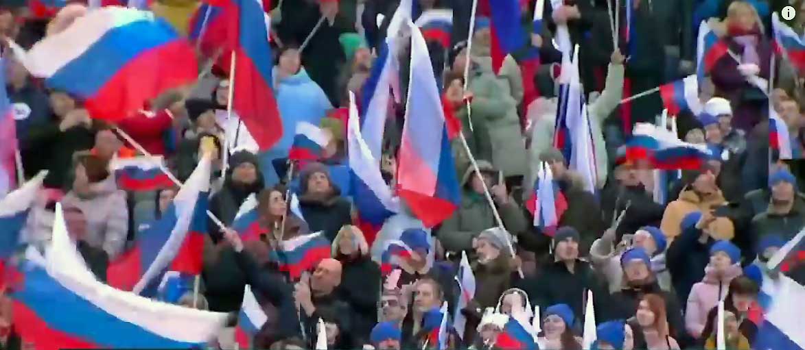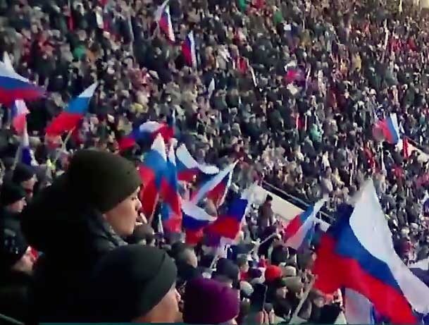 Diese Rede letzte Woche in Moskau im Stadion vor vielen Menschen geschah unter grossem Jubel, den man in Grossaufnahmen nahe nicht sehen kann, als der darübergelegt wured im Montagestudio.