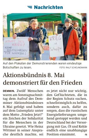 sie sollten diesmal stille sei, die Organisatoren der jährlichen Jubelfeiern vom 8.Mai 1945 in Demmin. Als Verlierer nun markiert. Und die Zeitung ihnen Wort und Bild entziehen.