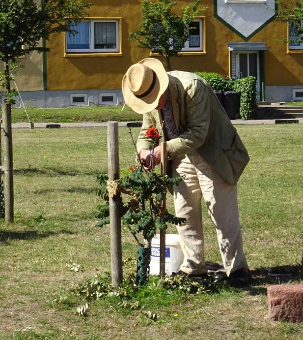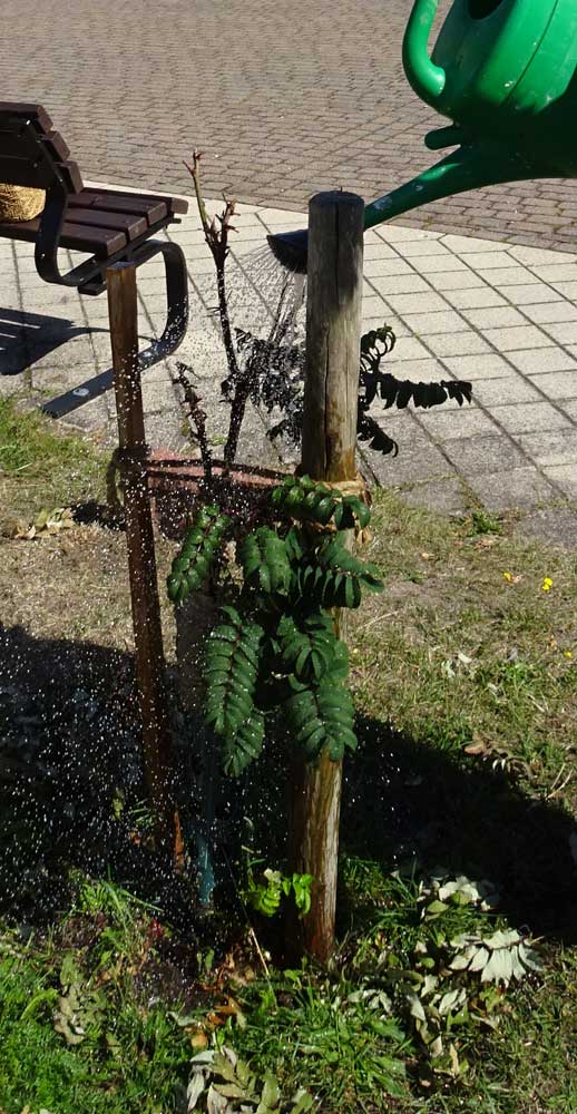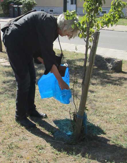 Solcher Art auch die Esche am Eingang gegenüber neue verbunden und bedürftige Ahorne und Birnen gewässert bis am Montag, heute alles vielleicht mit Schlauch versorgt werden kann.