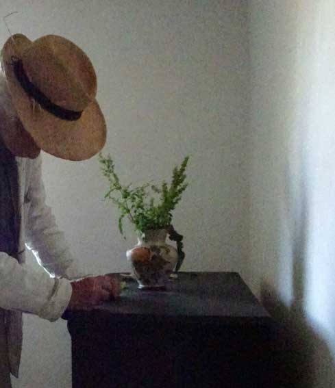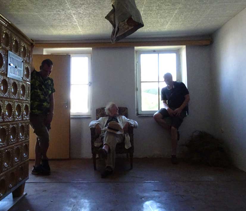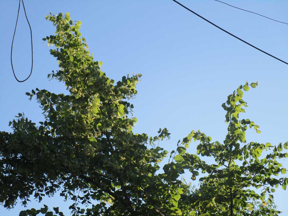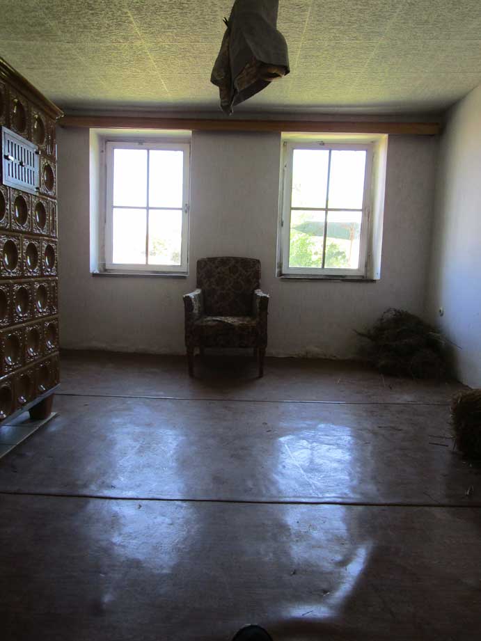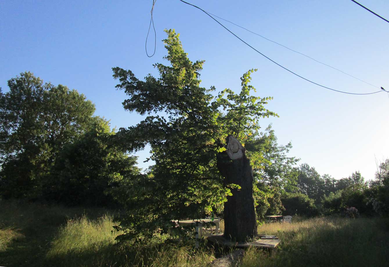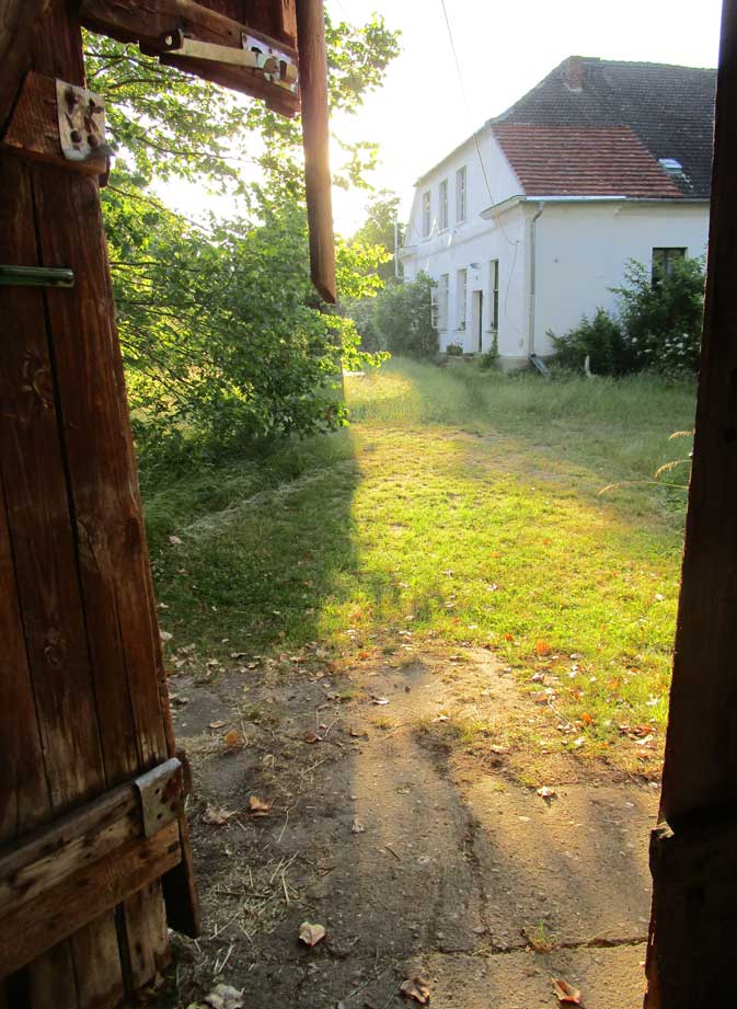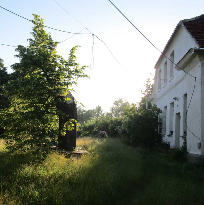 hinausschauend auf das Haus dazu und den ehemaliegn den Küchenhof nun die Linde wie sie nach dem Bruch um ihre neuen Form kämpft