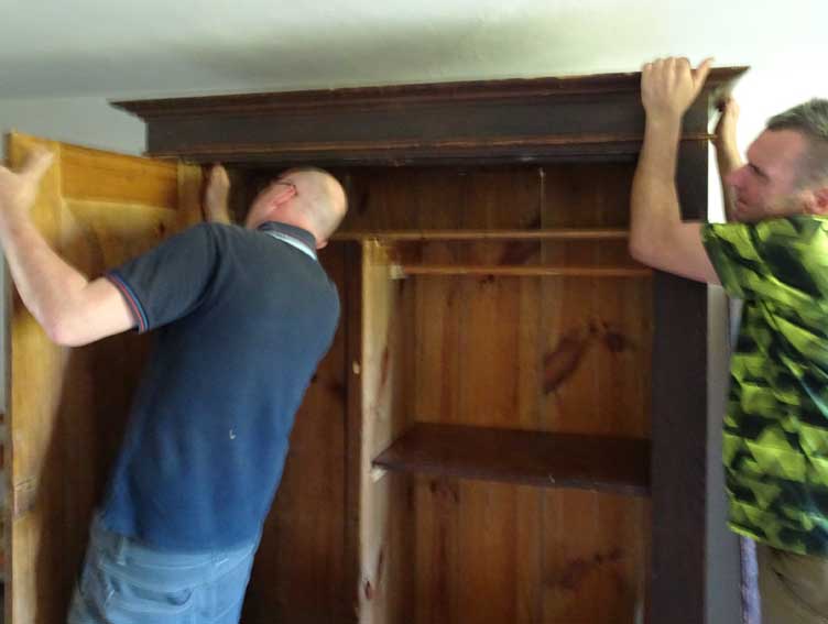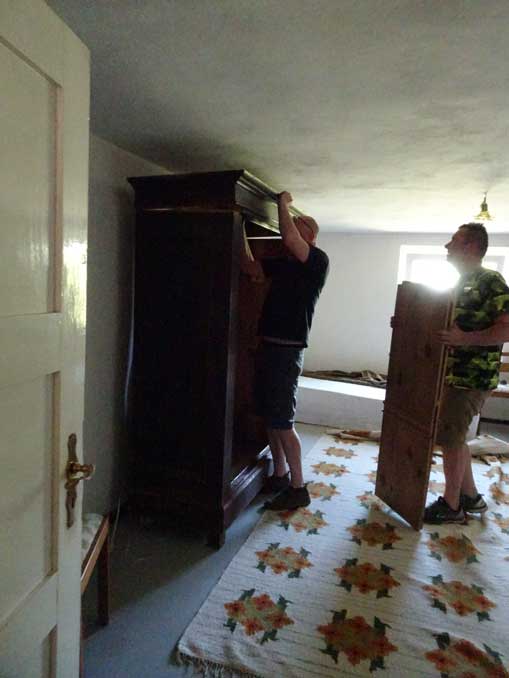 Ein Schrank -aus Berlin- soll her, wird gebraucht ins noch leere Zimmer, Schlafzimmer des A. Aber ins Leere?