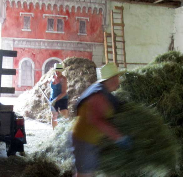 früher für das Heu als Nahrung und Stroh zu stellen der Tiere, gewaltige Gehäuse, grösser als das Wohnhaus der Menschen und die Ställe selbst. Dann rissen sie was dem Massenbetrieb nicht nützlich war ab oder bauten um, als Halle für die Maschinen der Felder oder um das Korn der schnellen Ernte zu trocknen.