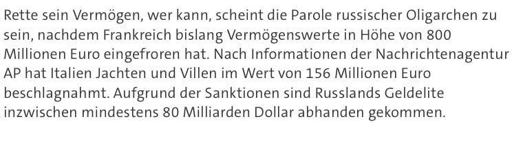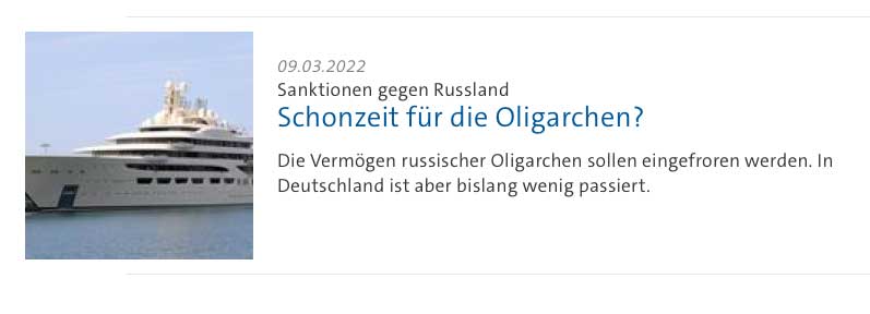 Wo wir das anstechen, sprudeln die Informationen. Thema Russland und die Oligarchen.