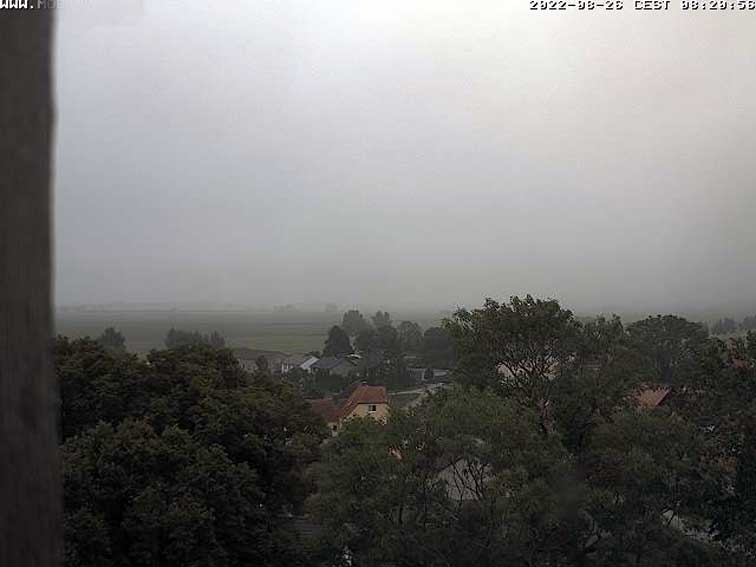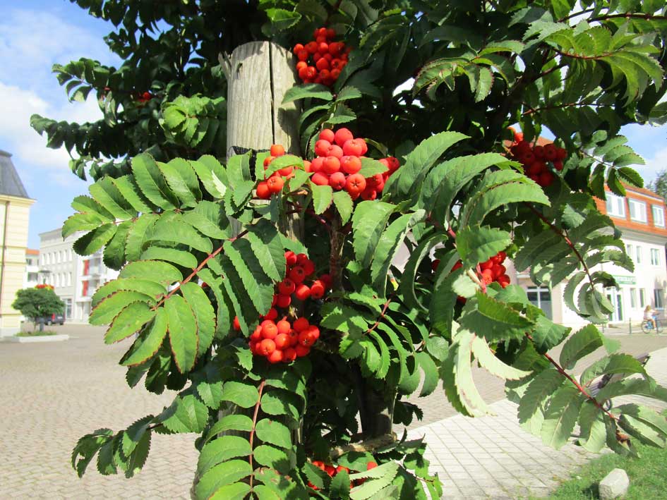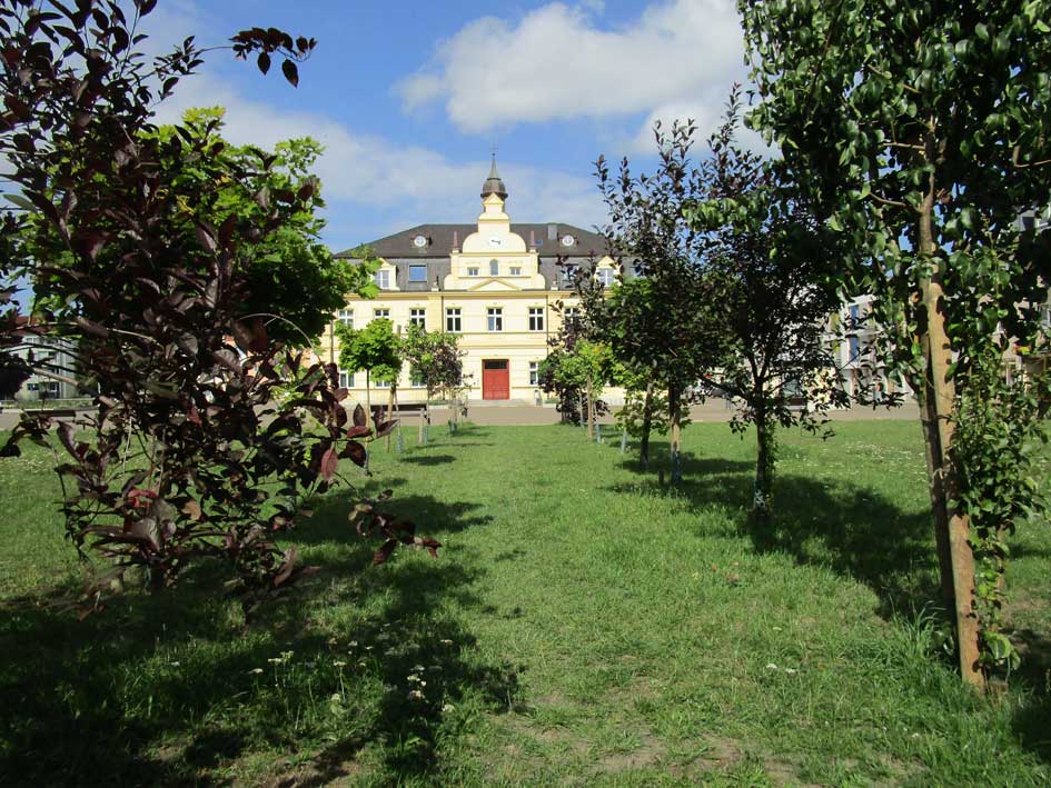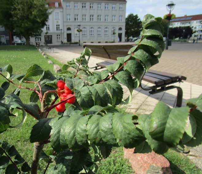 Demmin Kellergang die Bäume als Traverse über den sonst leeren, unbebauten Platz, und dort das Sorgenkind rechts. beobachten, ob das Holz innen noch Saft hat.