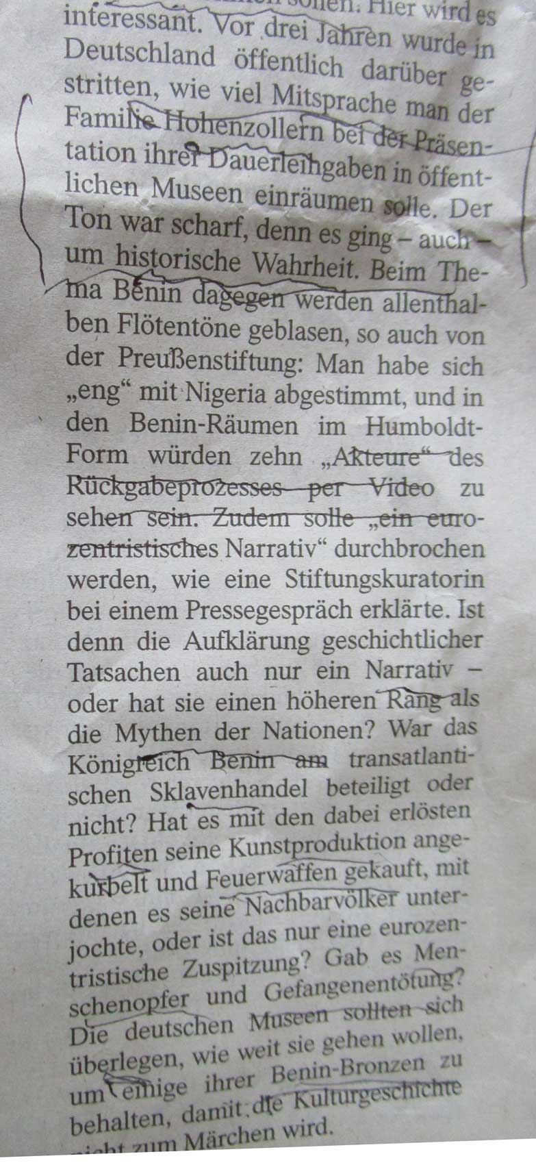 Der Vertrag zu Nutzung der nun geliehenen Raubstücke aus Afrika mit Deutungs-Hoheit über deren soziale und politische und geistige Bewertung in Arika geht über 10 Jahre und kein Plan B für danach. Für den zentralen Ort der Selbstdarstellung des Landes hier.