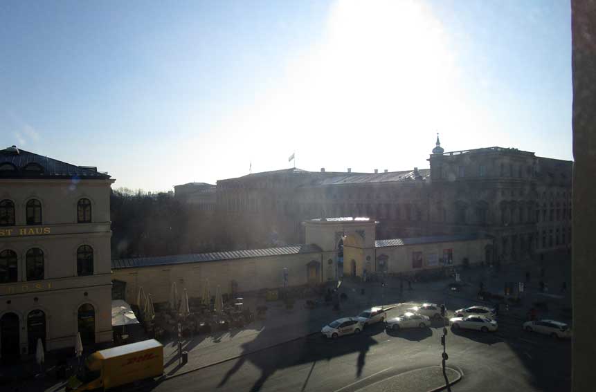 Gegenüber das Odeon, der ist historische Konzertsaal, nicht wieder entstanden, obwohl im Hof noch da, da links.